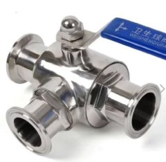 快装三通球阀也叫卫生级卡箍三通球阀,阀芯有三通L型和三通T型之分,其中三通L型球阀多用于介质流向的切换流向使用,三通T型球阀可用于调节分配个管道流量大小,也可以用于2条管路合流为1路使用。阀门多和气动执行器组成气动三通球阀,或和电动执行器组成电动三通球阀,可以灵活与中控系统集成,做自动化控制流量大小来使用。